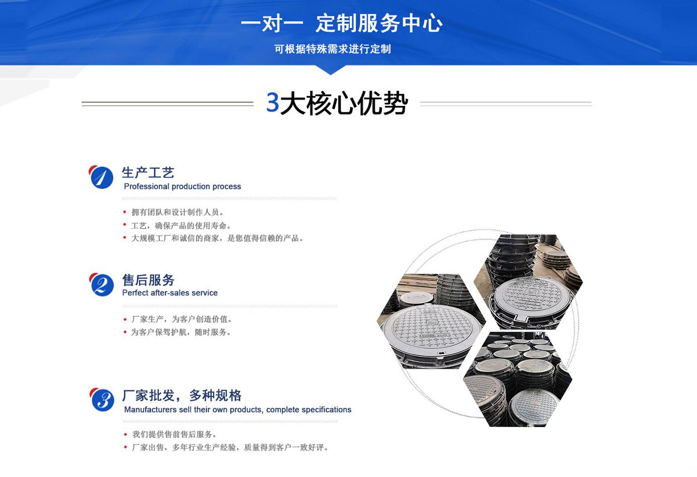 山東聊城健暉鑄造有限公司主營各種球墨鑄鐵井蓋,球墨鑄鐵防盜井蓋,球墨鑄鐵方形井蓋,球墨鑄鐵井蓋廠家等產品,可廣泛應用于市政建設、軌道交通設施、城市園林綠化、安防配套設施、石油化工等諸多領域。 產品采用良好的工藝流程,以確保產品質量的穩定性:以良好的檢測設備,確保質量的可靠性。廣泛應用于國內外城市的市政建設,通信,自來水,消防,園林,環保等行業,產品大獲贊譽! 我們堅持“質量為本、用戶至上、科技創新、科學管理”的經營方針?! ∶嫦蛭磥?,我們積極響應新時代的號召,走“一帶一路”、堅持“綠色環保”的國家方針政策,秉承“安甄致選,普利天下”的企業理念,共同鑄就新時代的輝煌篇章。...
